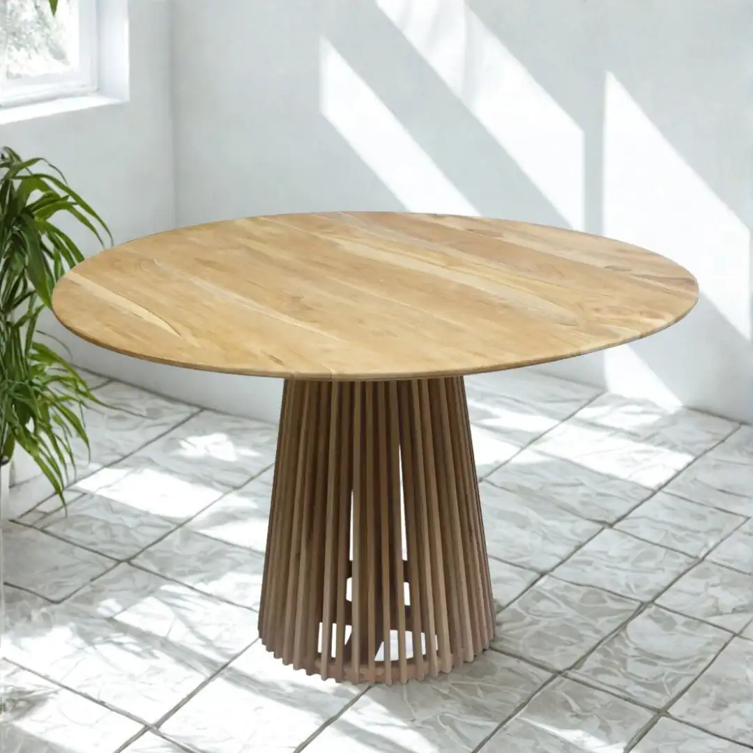 שולחן אוכל מעץ טיק קוטר 120 ס"מ Rujiki