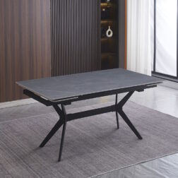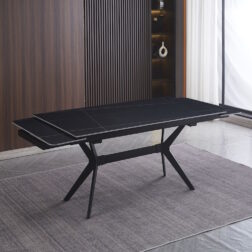 שולחן אוכל מודרני ומעוצב עם מנגנון הרחבה חכם, עשוי חומרים איכותיים לעמידות גבוהה ומראה יוקרתי. מתאים לכל חלל ומאפשר התאמה למספר סועדים משתנה. – שולחן אוכל מודרני עם מנגנון הרחבה חכם, חומרים איכותיים לעמידות ומראה יוקרתי, מתאים לכל חלל ומספק התאמה נוחה למספר סועדים משתנה.