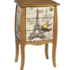 שידת עץ מעוצבת עם הדפס מגדל אייפל, שילוב ייחודי של פונקציונליות וסגנון וינטג' אלגנטי. – שידת עץ מעוצבת, הדפס מגדל אייפל, פונקציונלית ומעוצבת בסגנון וינטג'.